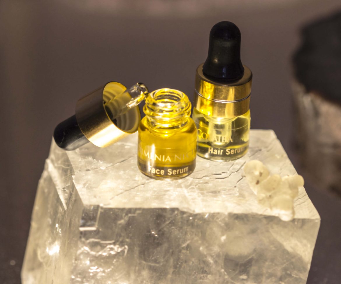 Copaiba trees are found mainly in tropical South America, particularly in the Amazon. The active biological properties of Copaiba resin are attributed to a group of phytochemicals called sesquiterpenes. Several of these chemicals are novel and found only in copaiba. Copaiba resin is the highest known natural source of caryophyllene, a well-known plant chemical documented for its powerful anti-inflammatory effects. It confers a shiny protective coating to hair.